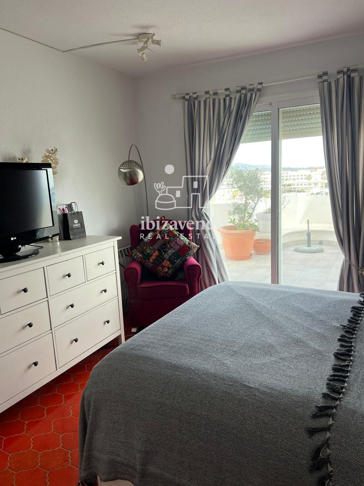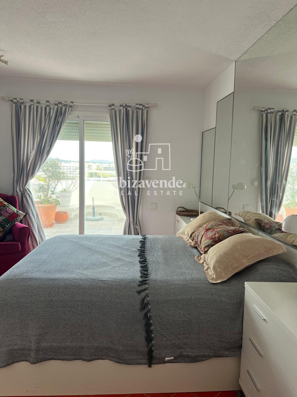 Magnifique penthouse dans le port de Santa Eulalia, immeuble en première ligne de la promenade maritime, avec vue sur le port et la mer, très lumineux. Superbe terrasse de 40 m² avec local buanderie.