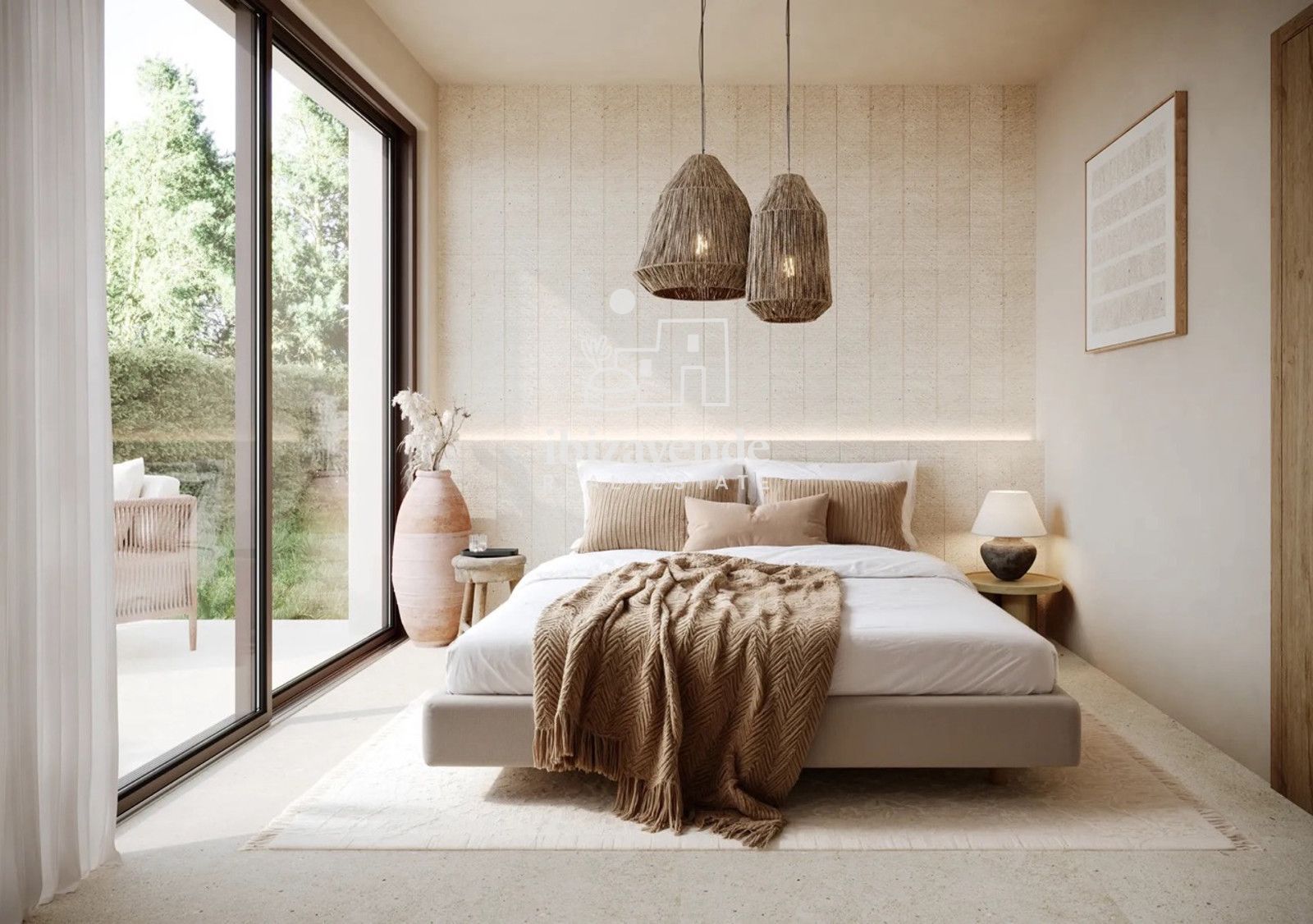 De woningen worden volledig gemeubileerd en instapklaar opgeleverd, met ruime, lichte en goed ingedeelde ruimtes. De open woonkamer is geïntegreerd met de keuken en komt via grote ramen uit op de buitenruimte, waardoor een directe verbinding met de tuin en het privézwembad ontstaat. Het door Porcelanosa ontwikkelde decoratieve ontwerp bestaat uit drie decoratieve lijnen die streven naar een evenwicht tussen materialen, licht en warmte. De Ibiza-stijl overheerst, met neutrale tinten, licht hout en een zorgvuldige selectie van materialen die rust, harmonie en welzijn uitstralen.